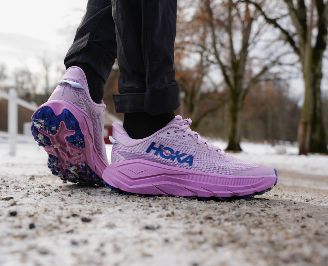 Siste utgave av Hokas mest allsidige sko har endelig ankommet i vanntett utgave. Hoka Challenger 8 GTX leverer den fenomenale allsidigheten Challenger er kjent for, med en 100% vanntett overdel. Challenger 8 er hybridskoen som er like god på asfalt og grus som den er på stien - det er derfor den ofte kalles en "Clifton for stien". Med en Gore-Tex Invisible Fit-membran sydd inn i overdelen er den i tillegg enda mer bekvem for deg som foretrekker tørre føtter.